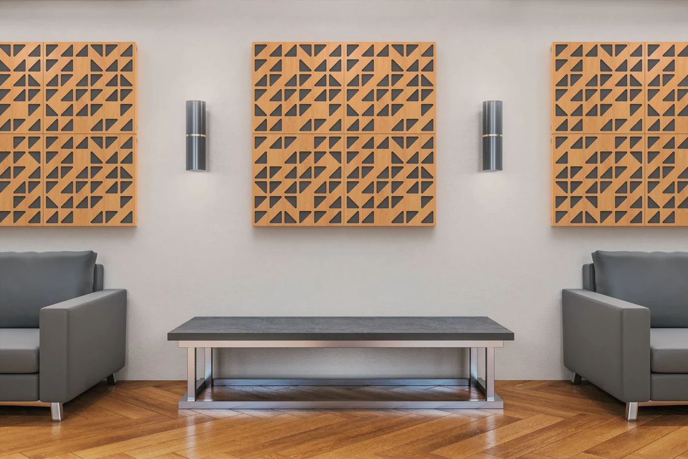 Triangelmönstret introducerades ursprungligen i Vicoustics VicCinema-serie och har nu vidareutvecklats till en del av VicPattern Ultra-serien.Här möts akustisk prestanda och modern design, vilket gör panelen särskilt attraktiv i miljöer där både ljud och estetik är viktiga.