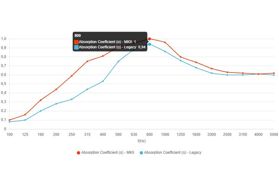 Den uppdaterade MKII-versionen har en 38 mm tjock kärna av VicPET Wool, vilket ger förbättrad absorptionsförmåga jämfört med tidigare generation.Utöver effektiv dämpning i mellan- och högfrekvenser bidrar den ökade tjockleken även till bättre prestanda i låga och lågmidregister, vilket ger en mer balanserad akustik i rummet.