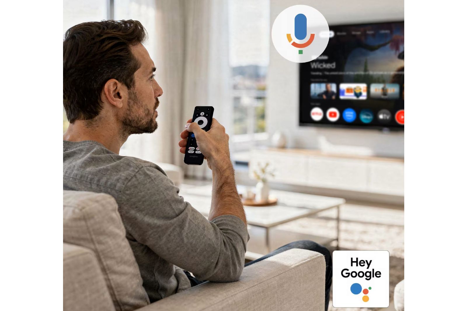Med Google Assistant kan du styra enheten med rösten direkt via fjärrkontrollen. Sök efter filmer, starta appar eller kontrollera uppspelningen utan att behöva navigera manuellt.Gränssnittet är användarvänligt och optimerat för snabb och enkel navigation.