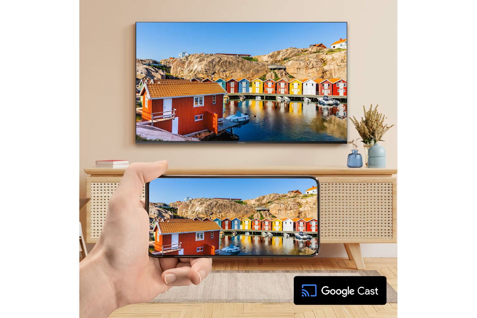 Med Chromecast built-in (Google Cast) och stöd för skärmspegling kan du enkelt streama eller spegla innehåll från mobil, surfplatta eller dator direkt till TV:n.Det gör det enkelt att dela video, bilder och appar på stor skärm.