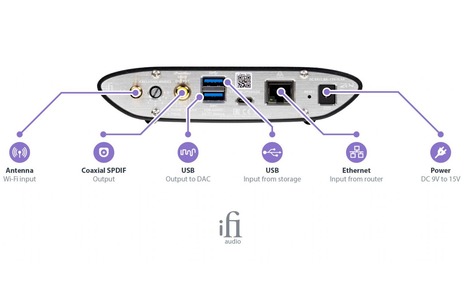 ZEN Stream 3 är konstruerad med fokus på ren signal och stabil strömförsörjning.Förbättrade polymerkondensatorer och ELNA Silmic II-kondensatorer bidrar till renare ström och mjukare diskant. De digitala utgångarna använder en femtoprecisionsklocka tillsammans med iFi:s Active Noise Cancellation och iPurifier-teknik för att minimera jitter och digitalt brus.