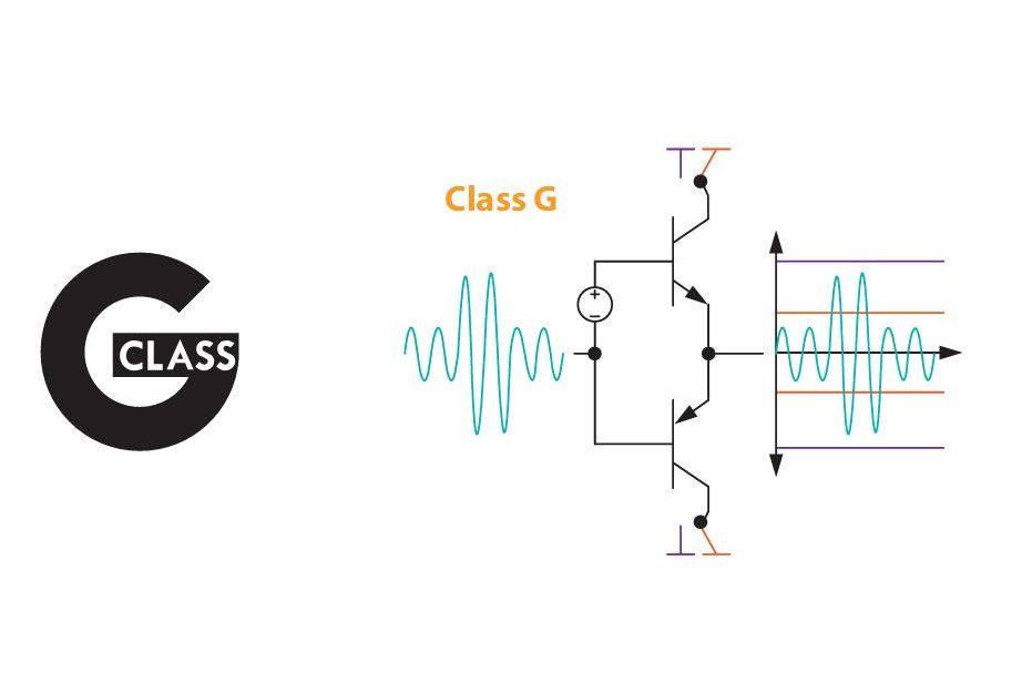 I stället för en enda strömförsörjning använder en klass G-förstärkare flera spänningsnivåer. Den första strömförsörjningen hanterar de flesta signaler. Om en dynamisk signal kräver mer effekt än vad denna nivå klarar, aktiveras en andra strömförsörjning gradvis och kan leverera full uteffekt när det behövs.