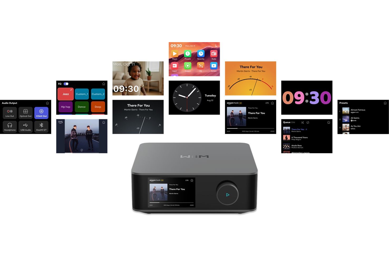 Amp Ultra kombinerar modern estetik med praktisk funktionalitet. Det eleganta unibody-chassit i aluminium kompletteras av en levande 3.5-tums pekskärm med glasyta, som ger dig snabb åtkomst till uppspelning, källval, albumomslag och mycket mer – allt direkt via fingertoppen.