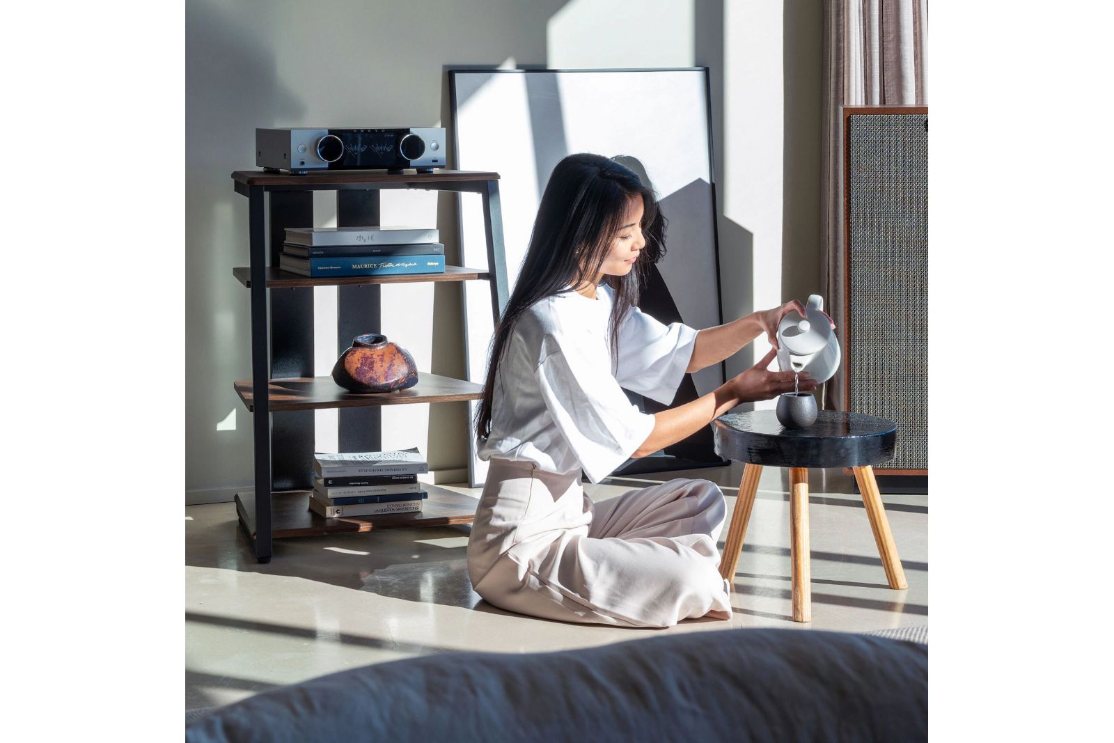 Frontpanelen i aluminium bidrar till både en exklusiv design och ökad stabilitet, vilket minskar vibrationer som kan påverka ljudet. Den ventilerade toppplåten med San Kuzushi-mönster är inspirerad av japansk designtradition och säkerställer effektiv värmeavledning. Konstruktionen är fläktlös, vilket ger tyst drift och förbättrad ljudprestanda.