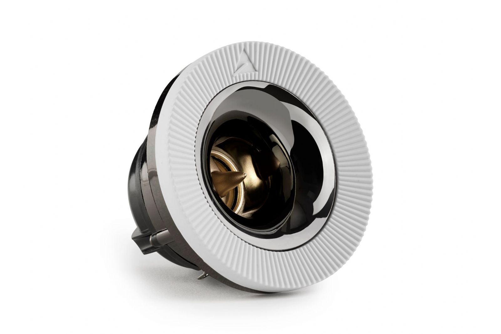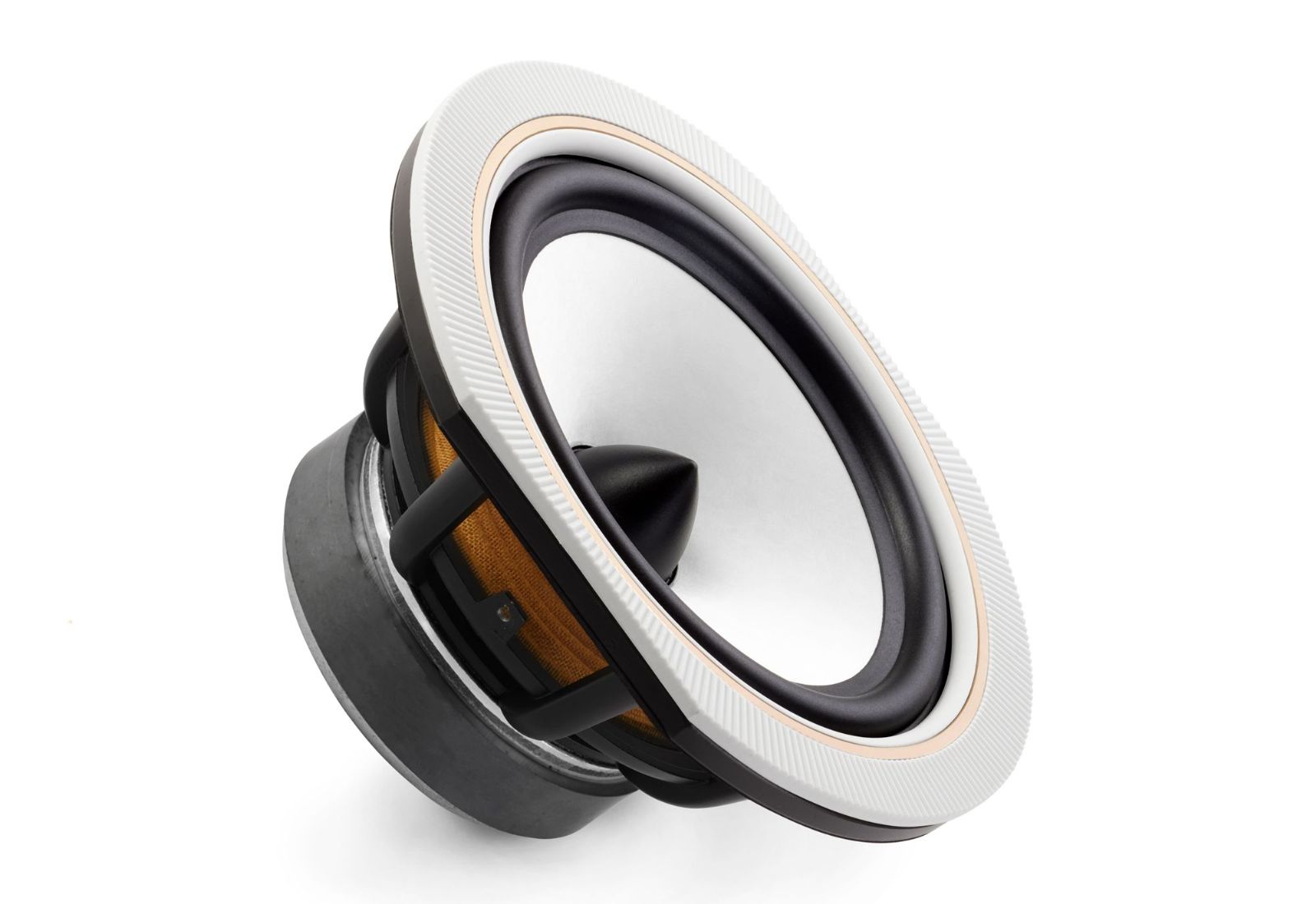 Den ikoniska hornladdade diskanten med 25 mm magnesium/aluminium-dome ger homogen spridning och detaljerad återgivning utan aggressivitet.
