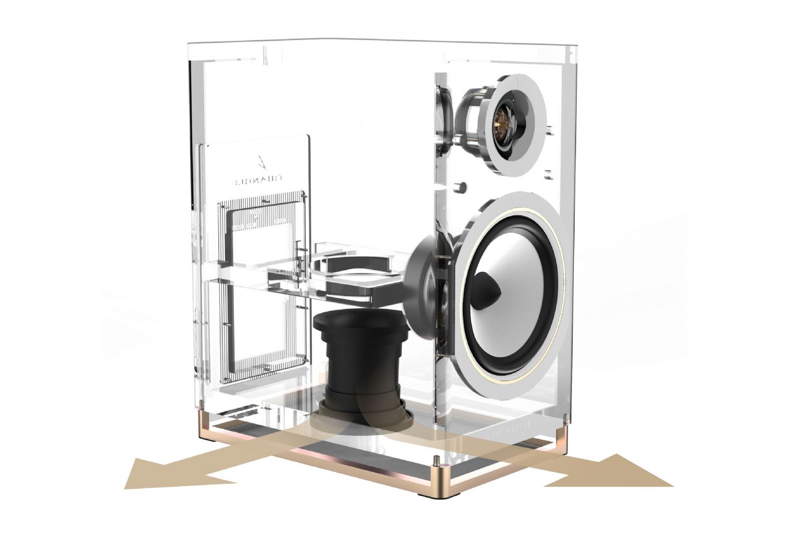 Den nedåtriktade basreflexporten ger jämn lågfrekvensspridning utan att påverka klarheten i mellanregistret.