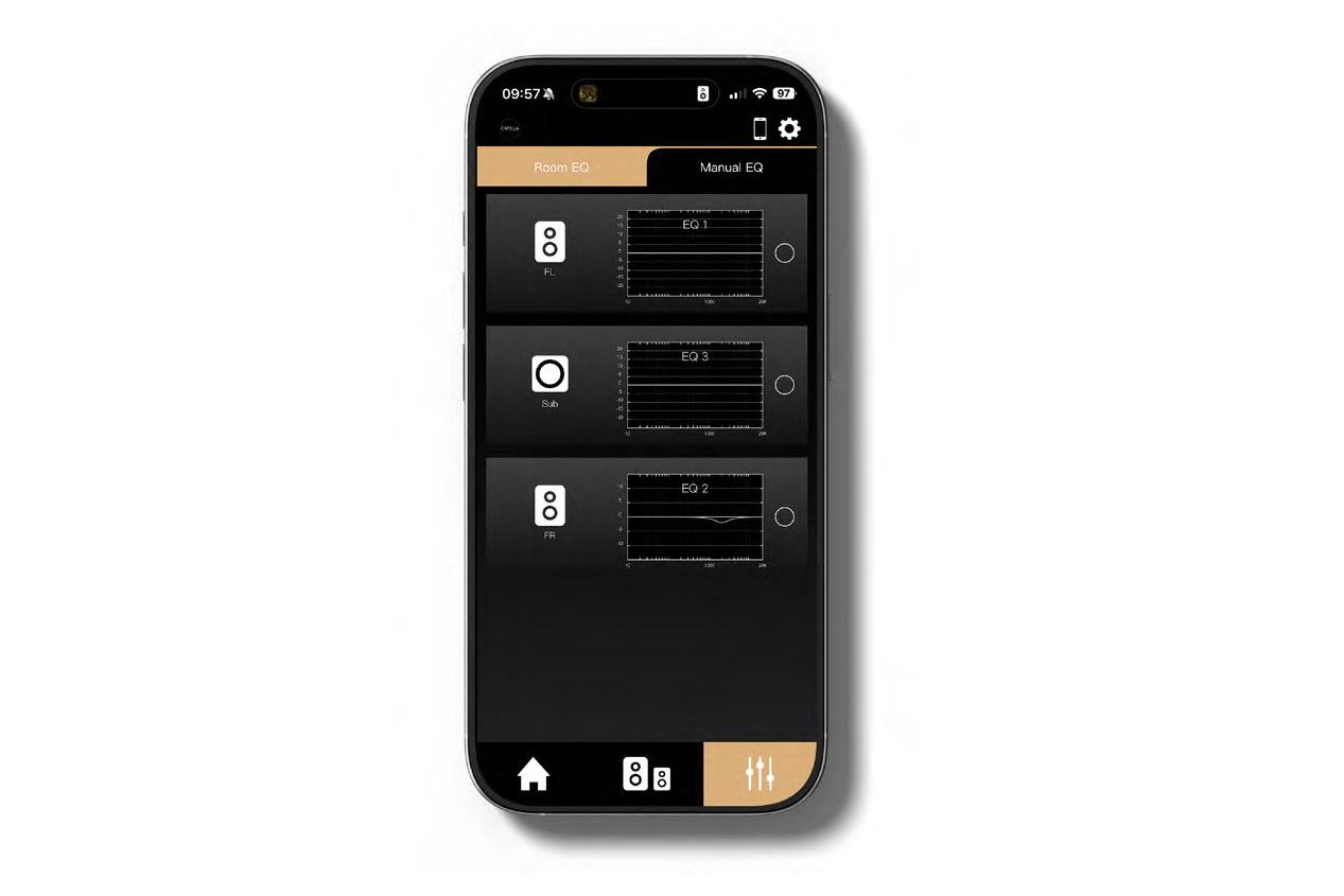 Med Auto Calibration anpassar sig Capella 2 automatiskt efter rummets akustik. Justeringen sker via iOS-enhet eller med Triangle Zen-mikrofonen (ingår ej, köps till separat). För dig som vill finjustera själv finns även en fullständig manuell EQ i appen.