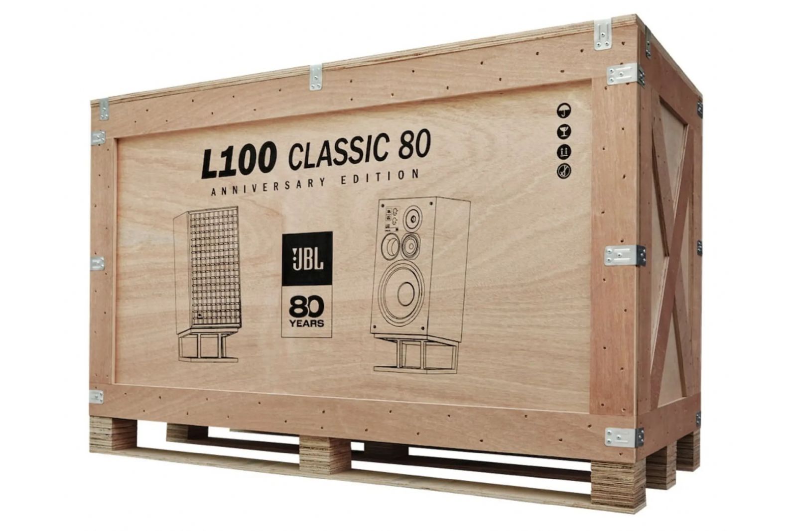 L100 Classic 80 levereras som matchat par och inkluderar ett set JS-150 golvstativ som placerar högtalarna i optimal lyssningshöjd. Hela systemet levereras i en specialdesignad trätransportlåda för säker och exklusiv leverans.