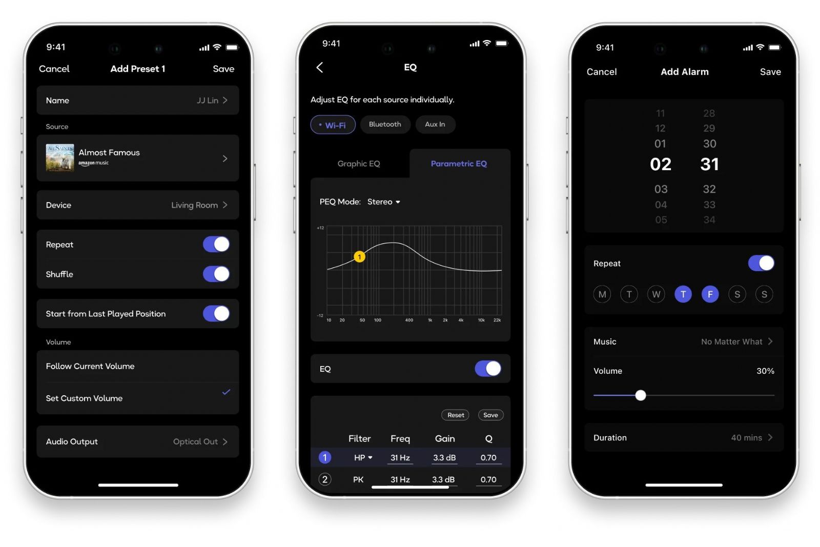 Med Smart Presets kan du omedelbart starta dina favoritspellistor, radiokanaler eller ingångar med personliga inställningar för volym, EQ, shuffle/repeat och speltid. Du styr allt direkt från högtalarens touchscreen, via appen eller med WiiM Remote.Med Music Alarms & Routines kan du schemalägga morgon- och kvällsrutiner med dina favoritförinställningar, streamingtjänster eller lokala musiksamlingar. Anpassa tid, volym och speltid så att musiken följer din dagliga rytm.