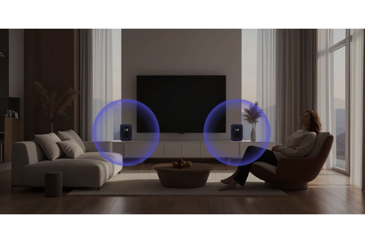AI RoomFit™-tekniken använder inbyggda mikrofoner i WiiM Sound (eller din telefon via WiiM Home-appen) för att analysera hur ljudvågor interagerar med ditt specifika rum. Baserat på denna analys justerar den automatiskt ljudets frekvensgång och utsignal för att kompensera för akustiska problem som ojämn bas eller reflektioner.