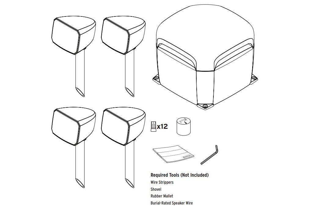 Systemet använder en sluten konstruktion för bättre driftsäkerhet utomhus, samtidigt som subwoofern är anpassad för sten och markmiljöer eller delvis nedgrävning, vilket gör den enkel att integrera diskret i trädgårdsmiljön.