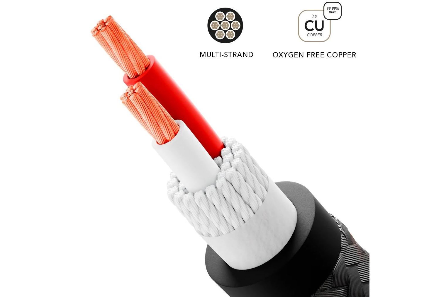 BLACK Series är designade med dubbel isolering som bevarar signalens integritet och skyddar mot elektromagnetiska störningar. Den inre isoleringen kombinerar bomull och flexibel PVC för vibrationdämpning och skydd av ledarna, medan det yttre lagret av flätad PVC och tyg ger extra styrka och flexibilitet. Det betyder att kablarna är både hållbara och lätta att installera, samtidigt som ljudet förblir rent och opåverkat.