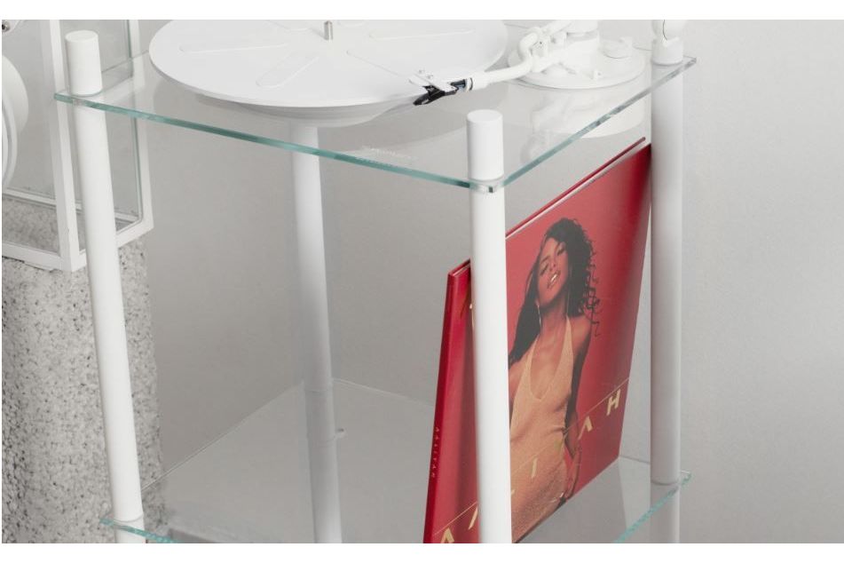 Transparent Turntable Stand är tillverkad av lätt aluminium och 6 mm härdat glas, vilket skapar en stabil och visuellt tilltalande möbel. Den minimalistiska designen gör att den smälter in i alla rum, samtidigt som den lyfter fram din vinylspelare och samling. Med hyllor för upp till 140 skivor får du både organiserad förvaring och en möjlighet att visa upp dina favoritalbum.Den modulära konstruktionen gör det enkelt att bygga ut ditt system i takt med att samlingen växer, genom att ersätta skivspelarens korta ben med bordets robusta pelare och hyllor.