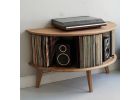 Bilden visar Display LUNA i ek med högtalarskydd i valnöt och en extra förvaringssektion