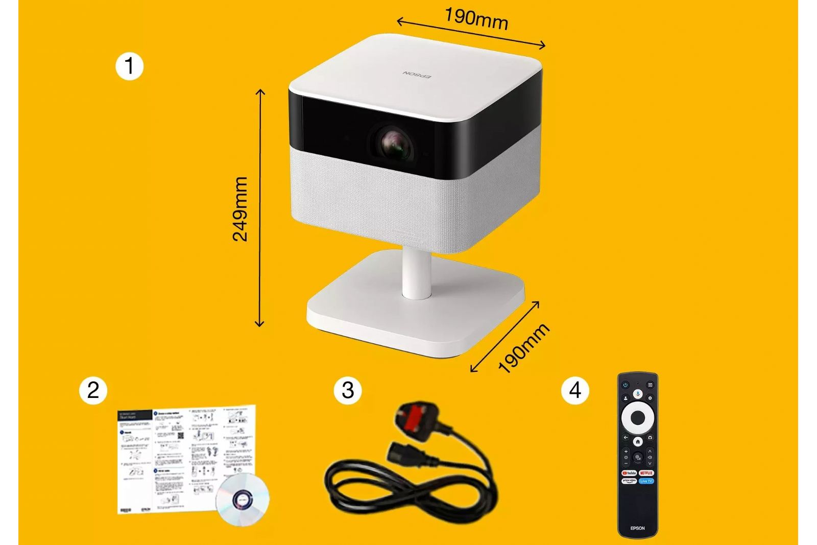 Utöver det omfattande streamingstödet du får via Google TV har projektorn även en HDMI-ingång som stödjer eARC/ARC ljudretur till en kompatibel förstärkare/soundbar/aktiv högtalare, 3.5 mm hörlursuttag samt USB-A för anslutning av extern hårddisk.Medföljande tillbehör