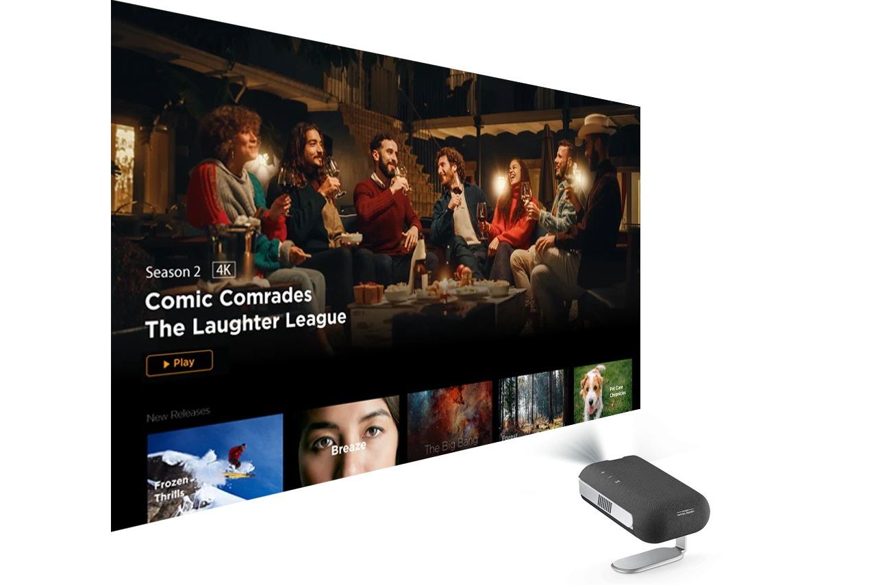 Du kan streama dina favoritfilmer och serier direkt i projektorn via det inbyggda smart-TV systemet Google TV med certiferad Netflix.