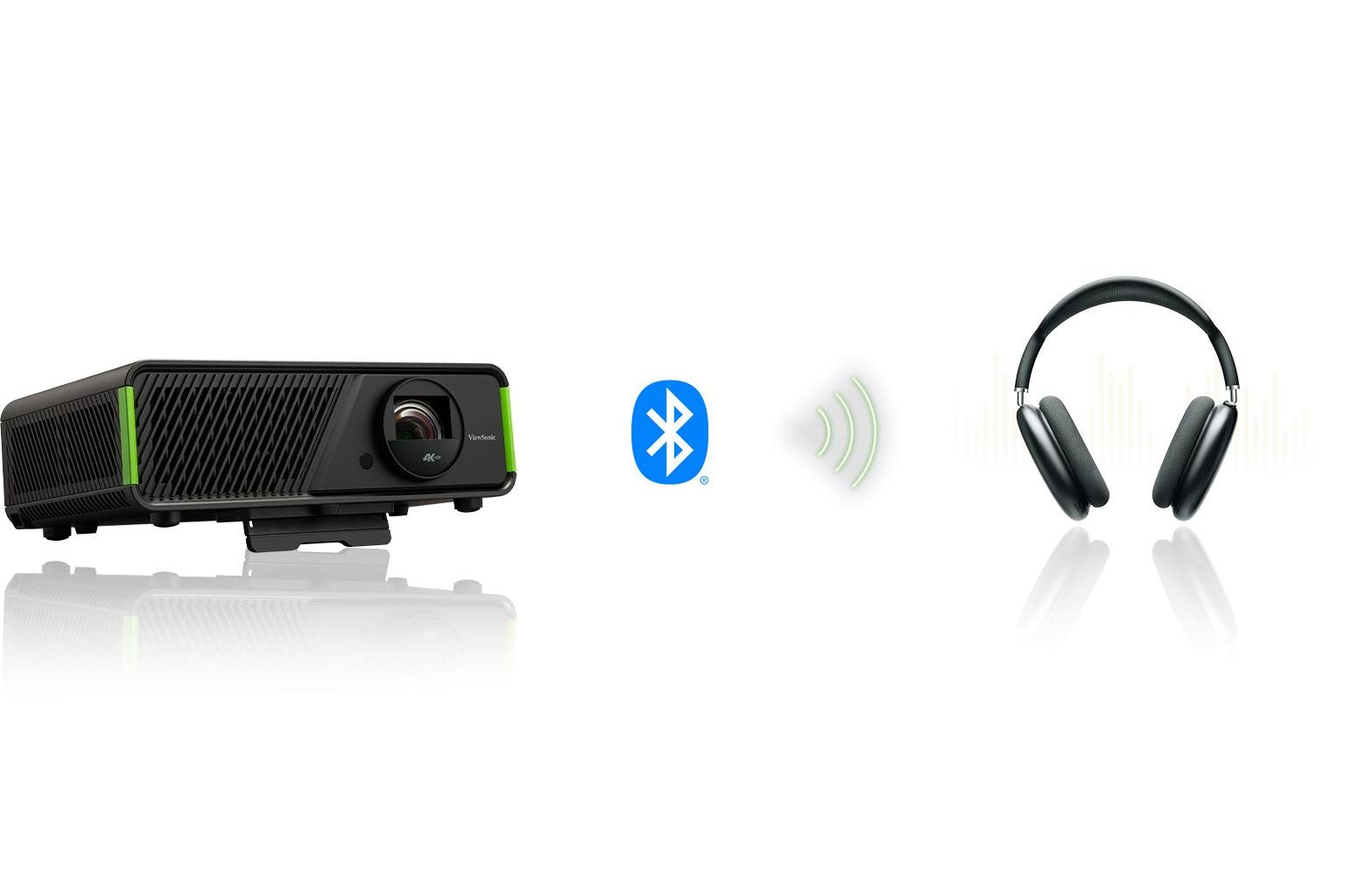 Skicka ljud trådlöst från projektorn till dina Bluetooth-hörlurar och fördjupa dig helt i storbildsunderhållningen, utan externa störningar.