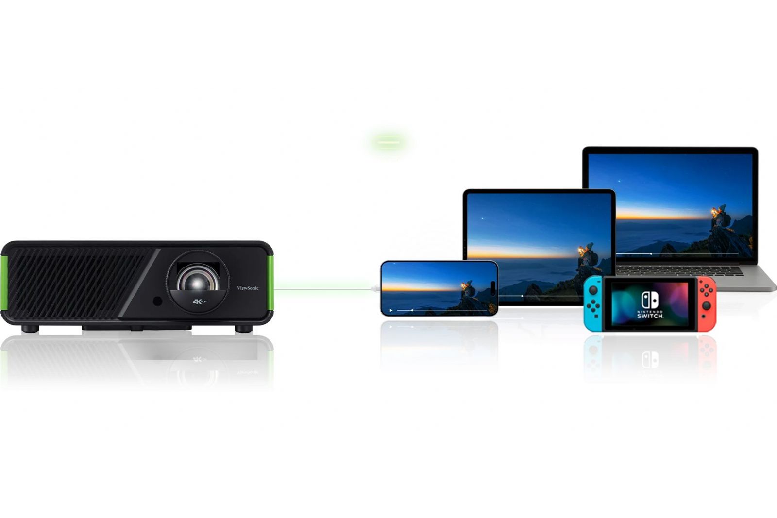 Strömma och ladda samtidigt! Anslut dina mobila enheter, inklusive senaste iPhone, till M1MaxN med en USB-C-kabel och projicera enkelt streamad video, FaceTime-samtal eller Nintendo® Switch-spel direkt på storbildsskärmen – helt utan dockningsstation.