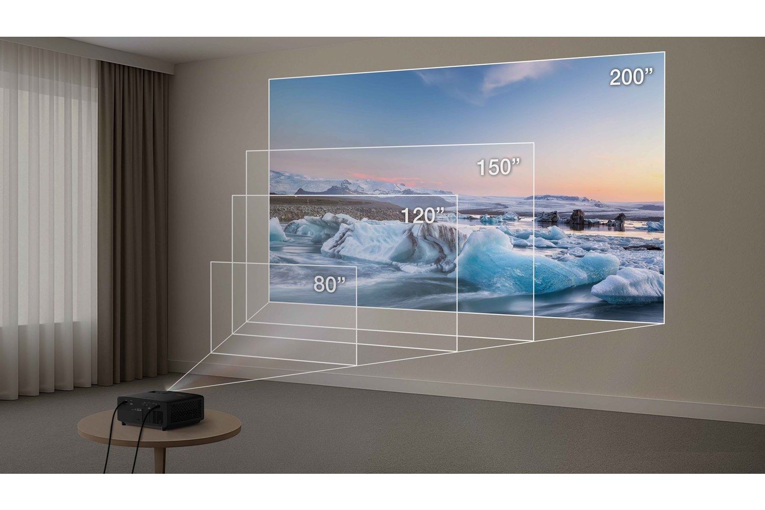 Projektorn har ett projektionsförhållande på 1.21-1.59:1 med 1.3 x zoom och en native offset på 105%. Tänker du projicera en bildstorlek på säg 120 tum kan projektorn placeras mellan 3,22 och 4.23 meter från lins till duk. Du kan även använda vår eminenta projektorkalkylator som du hittar längst ner på sidan.