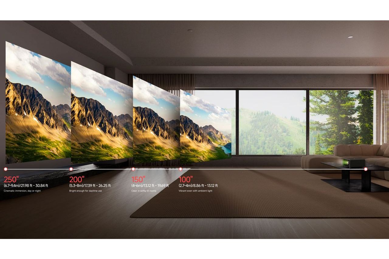Projektorn kan skapa bildstorlekar upp till cirka 250 tum, vilket ger en verklig biokänsla hemma. Kombinationen av hög ljusstyrka, 4K-upplösning och bred färgrymd gör att både filmer, serier och spel upplevs mer engagerande på stor duk.