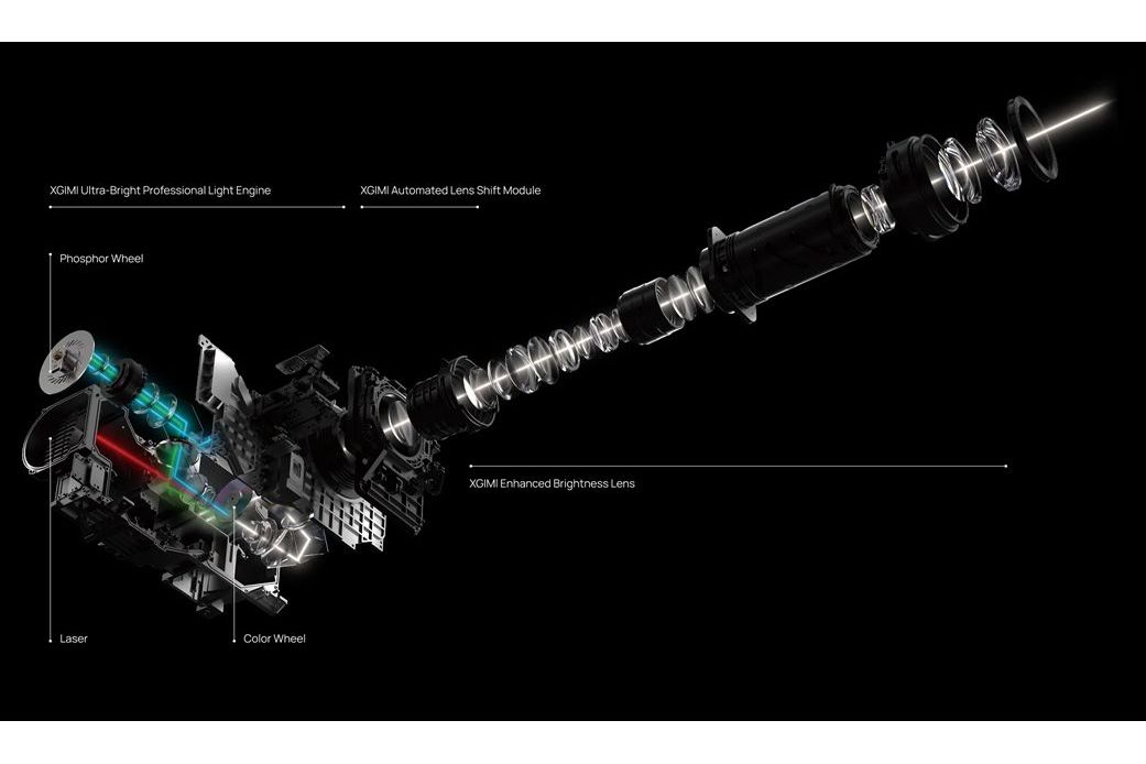 XGIMI Titan är utrustad med en avancerad optisk konstruktion som kombinerar en kraftfull ljusmotor med ett högkvalitativt linsystem för att maximera ljusstyrka, skärpa och färgprecision. Projektorn använder en laserbaserad ljusmotor tillsammans med ett fosforhjul och färghjul för att skapa ett brett och stabilt ljusspektrum, vilket bidrar till hög ljusstyrka, naturliga färger och god kontrast.Ljuset passerar genom ett optiskt system med flera noggrant designade linselement som arbetar tillsammans för att säkerställa hög skärpa över hela bildytan. Den högkvalitativa linsen är optimerad för att bibehålla detaljrikedom även på mycket stora bildstorlekar, vilket gör att Titan kan leverera en tydlig och kontrastrik bild även i större hemmabiomiljöer.