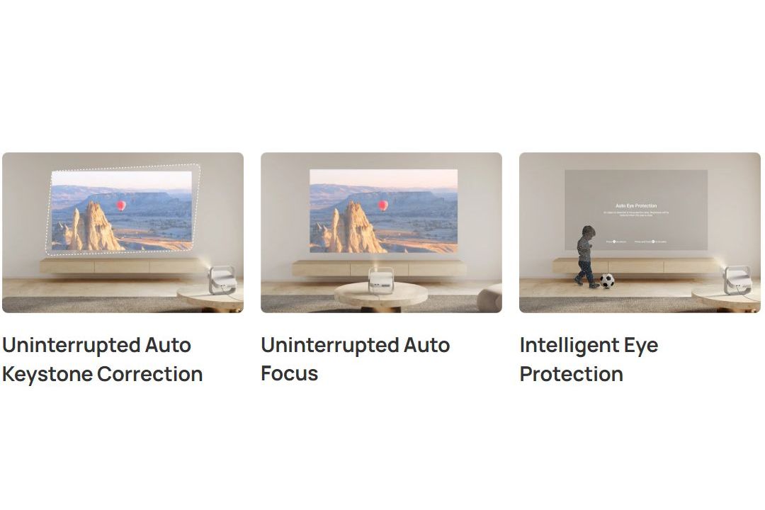 Med XGIMI:s ISA (Intelligent Screen Adaptation) justeras bilden automatiskt för optimal visning. Systemet hanterar både autofokus och keystone-korrigering så att bilden alltid blir rak och skarp – utan att du behöver göra några manuella inställningar.Funktionerna inkluderar automatisk keystone-korrigering, autofokus och intelligent ögonskydd som sänker ljusstyrkan om någon passerar framför projektorn.