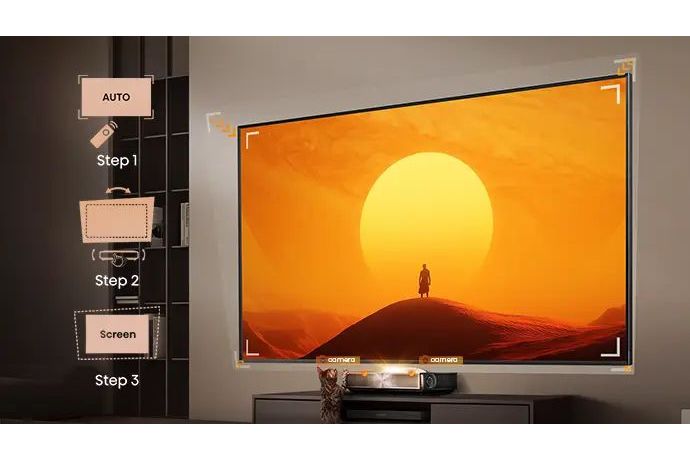 Med Hisense L9Q är installationen av projektorn enkel och snabb. Den aktiva funktionen för automatisk skärminställning justerar bilden åt dig – placera bara projektorn, så fixar kamerorna resten på några sekunder.