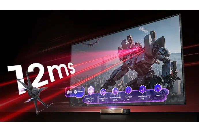 Hisense L9Q:s avancerade LPU™ Digital Laser Engine 2.0 tar bildkvaliteten till en ny nivå. Med sin innovativa trippel-laserljuskälla (röd, blå och grön) levererar den livfulla, naturtrogna färger med en imponerande klarhet. AI-teknik justerar kontinuerligt ljusstyrka, kontrast och skärpa i realtid, så att allt du tittar på – filmer, sport eller serier – alltid framträder i optimal kvalitet.