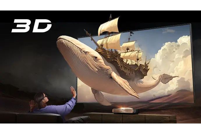 Med Hisense L9Q:s 3D-teknik tas filmupplevelsen till nästa nivå. Med DLP Link Active 3D-glas får varje bildruta liv med imponerande djup och kristallklar detaljrikedom – på en bred, jämn och flimmerfri skärm som gör att du verkligen känner dig mitt i filmen.