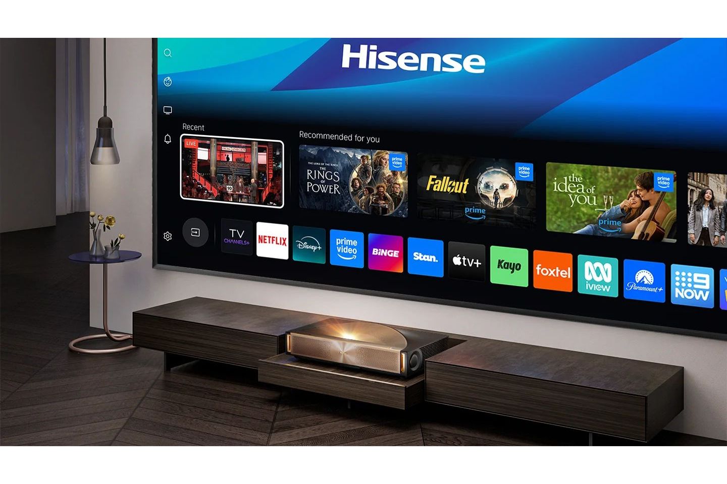 Upplev Hisense L9QD:s smarta underhållning som anpassar sig efter dig. Direkt ur lådan får du enkel tillgång till ett brett utbud av globalt och lokalt innehåll. Med avancerad AI i VIDAA OS lär sig systemet dina preferenser och skräddarsyr upplevelsen efter dig – utan väntan eller krångel, bara ren njutning. L9QD stödjer även Apple AirPlay2 och Apple Home samt har stöd för Bluetooth.