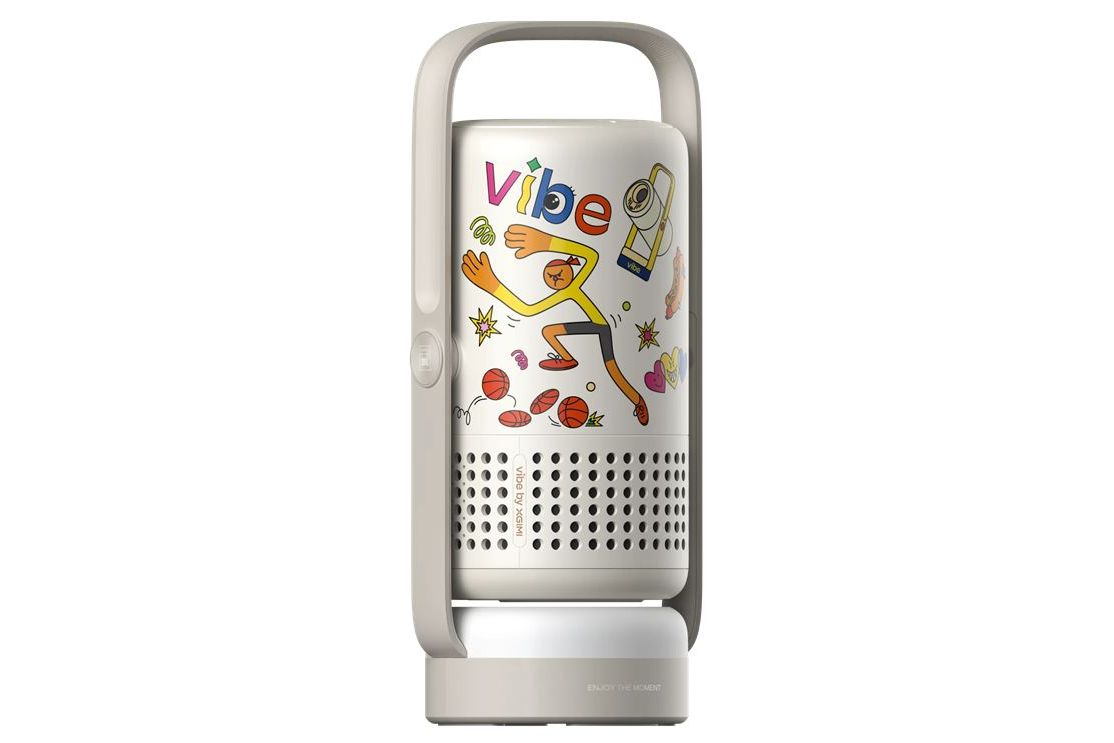 Vibe One är designad för att vara lika snygg som funktionell. Den moderna formen gör projektorn till en naturlig del av inredningen. För den som vill sätta en personlig prägel ingår även dekorativa klistermärken i förpackningen så att projektorn kan anpassas efter egen stil.Den integrerade stativkonstruktionen fungerar dessutom som ett praktiskt bärhandtag, vilket gör projektorn enkel att ta med mellan olika rum eller utomhus.