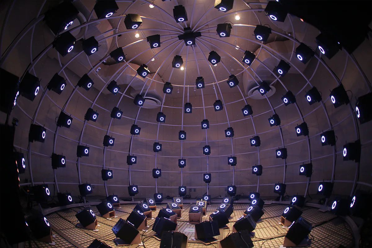 *Fotot visar tekniklabbet för signalbehandling av omslutande ljud.