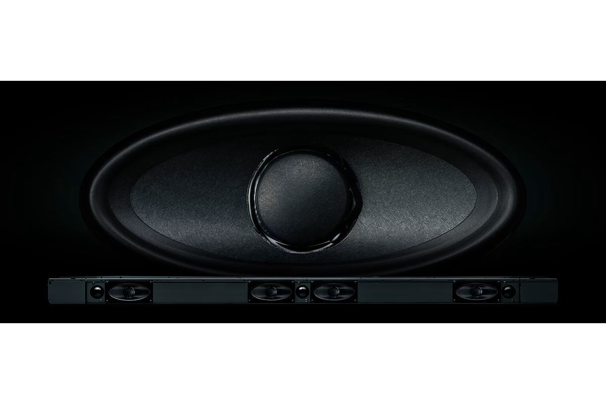 De specialtillverkade ovala högtalarna är nyckeln till att skapa en slimmad soundbar med distorsionsfritt, omslutande surroundljud. Dessa högtalarelement levererar ett fylligt mellanregister och kraftfull volym, vilket ger ett klart och naturligt ljudfält utan akustiska störningar.Genom att optimera högtalarens struktur och magnetiska kretsar har vi uppnått hög konstyrka och högfrekvent klarhet, vilket resulterar i ett distorsionsfritt ljud. Resultatet är en soundbar som erbjuder en elegant design och ett kraftfullt, balanserat ljud för en exceptionell lyssningsupplevelse.