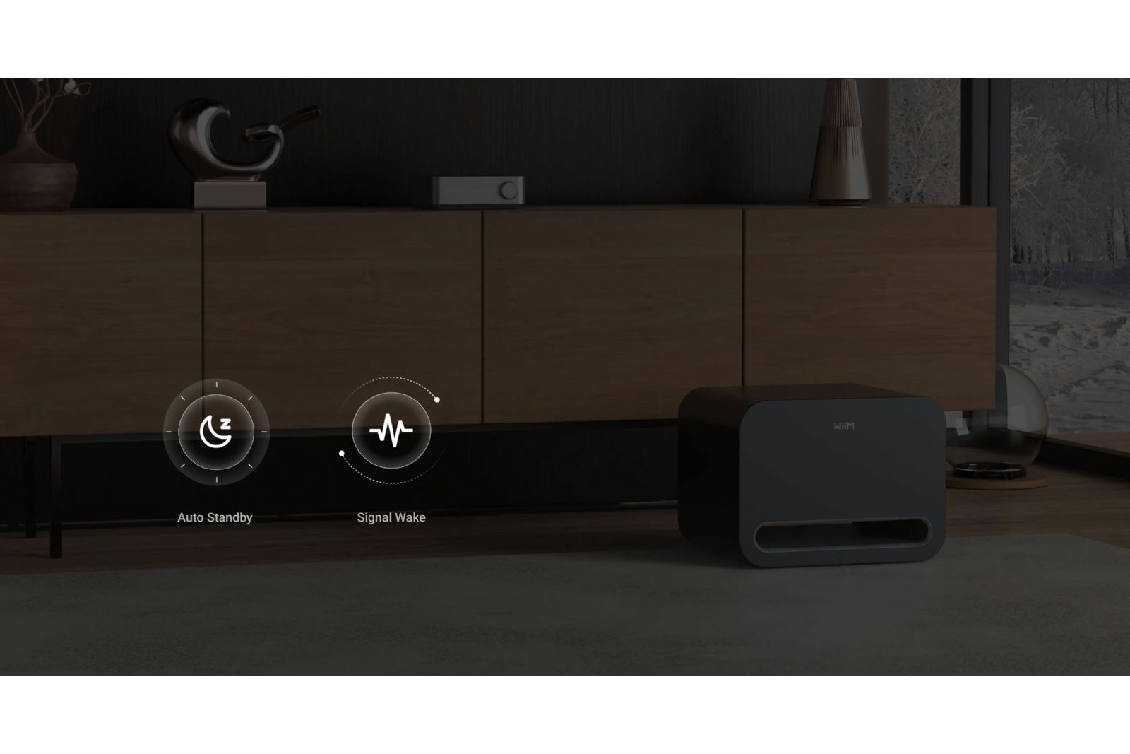 Intelligent strömhantering Sub Pro går automatiskt in i standbyläge och känner av RCA-signal eller ansluten plugg för att optimera energiförbrukningen och göra användningen enkel och smidig.