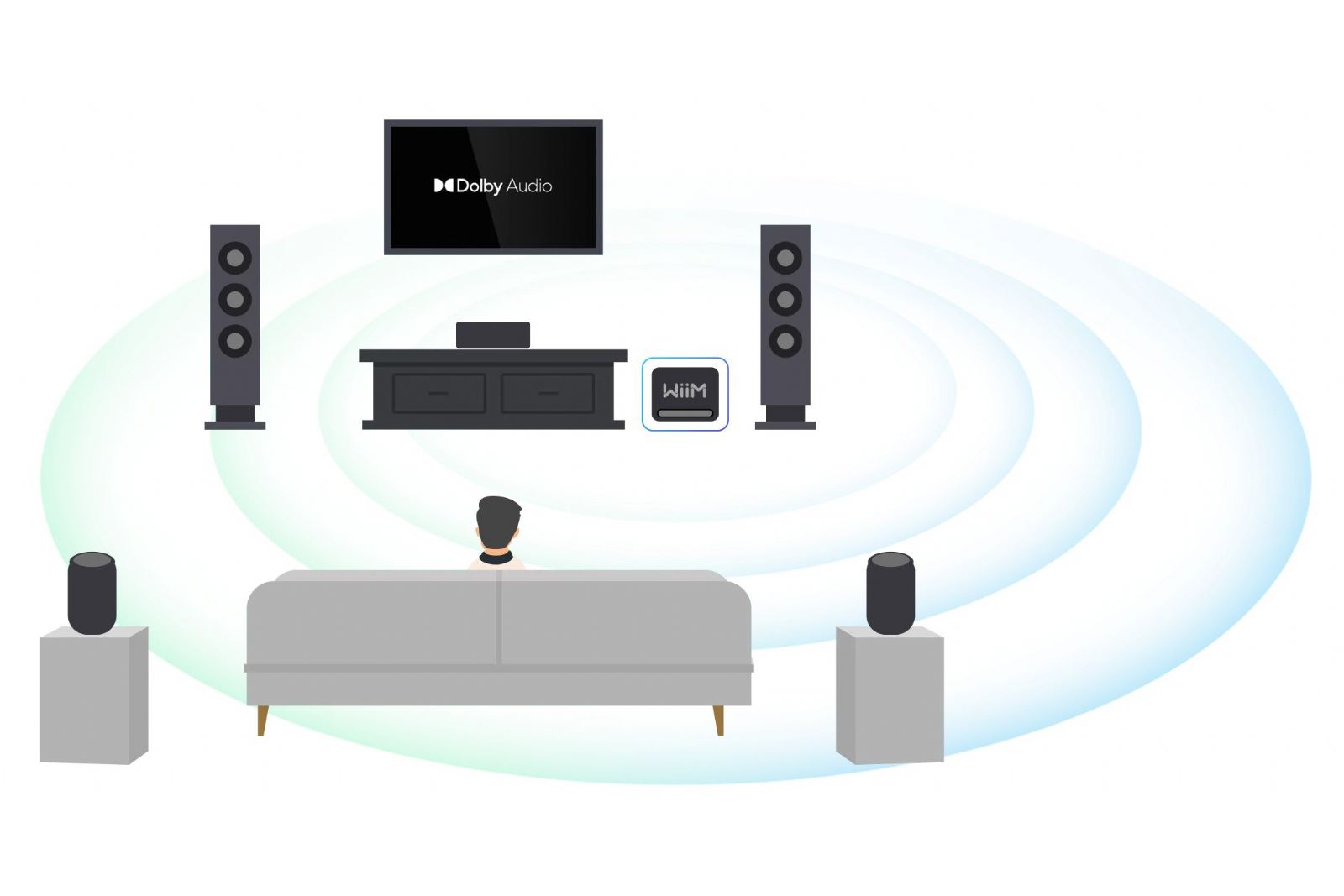 Välj dina huvudhögtalare eller förstärkare från WiiM i appen, eller anslut via RCA sub-out, och börja njuta av ljudet.
