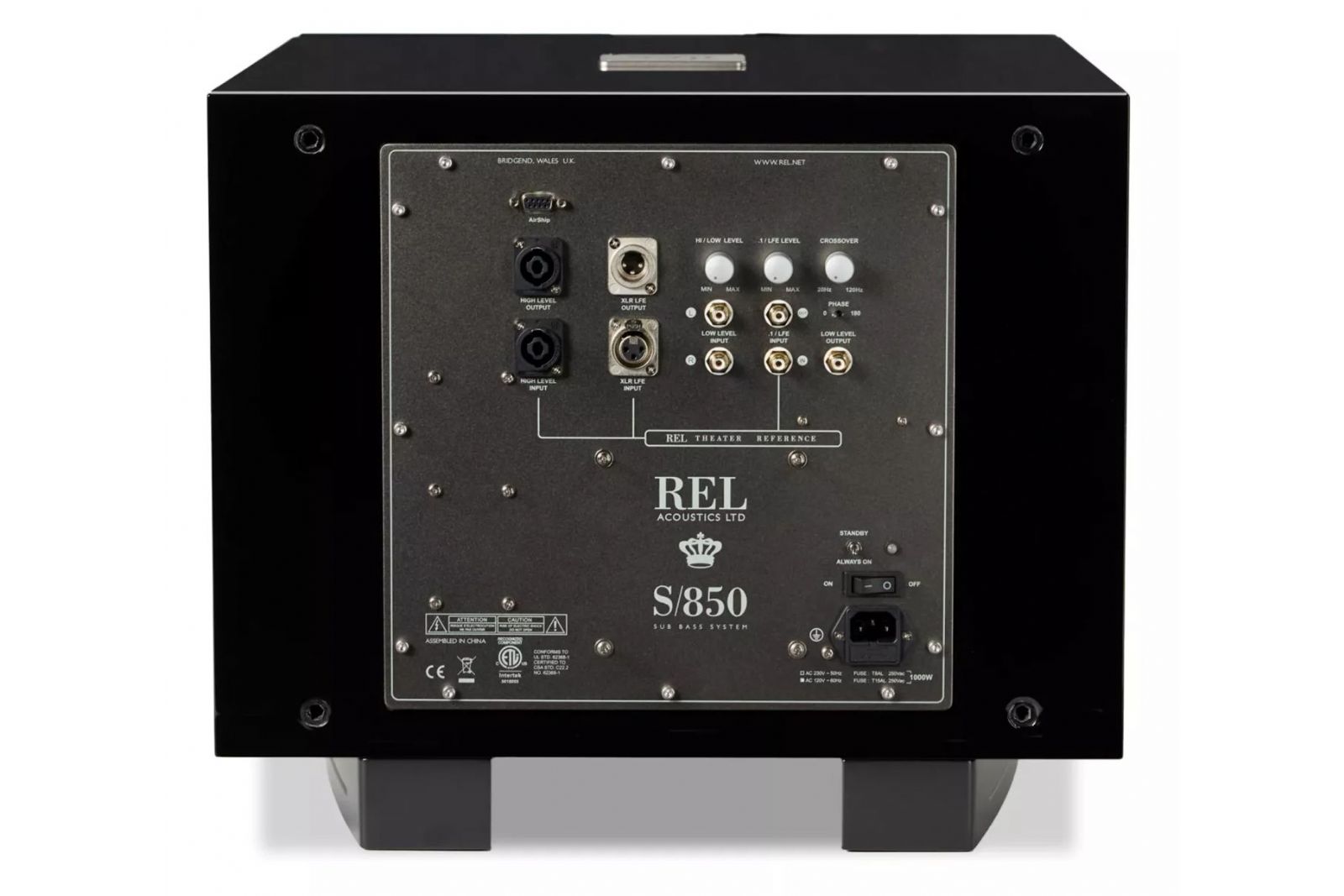 Det saknas inte direkt anslutningar på REL:s S-serie. Du har såväl in- som utgångar i form av REL:s klassiska Neutrik Speakon, Lågnivå (2 in, 1 ut), LFE RCA, LFE XLR samtPå baksidan hittar du även justeringar för inställning av volym (både hög- och lågnivå), delningsfrekvens (20 - 120 Hz) samt fasjustering (0/180 grader)