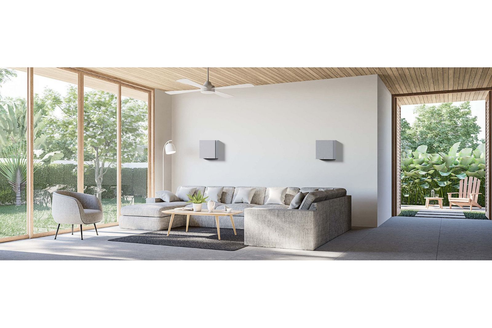 Modeller som börjar med C tillhör takhögtalarserien och W-modellerna väggserien, men alla högtalare kan användas fritt i Mount Box-kabinetten. Serienamnen handlar främst om formfaktor och storlek – inte om hur du måste montera dem.