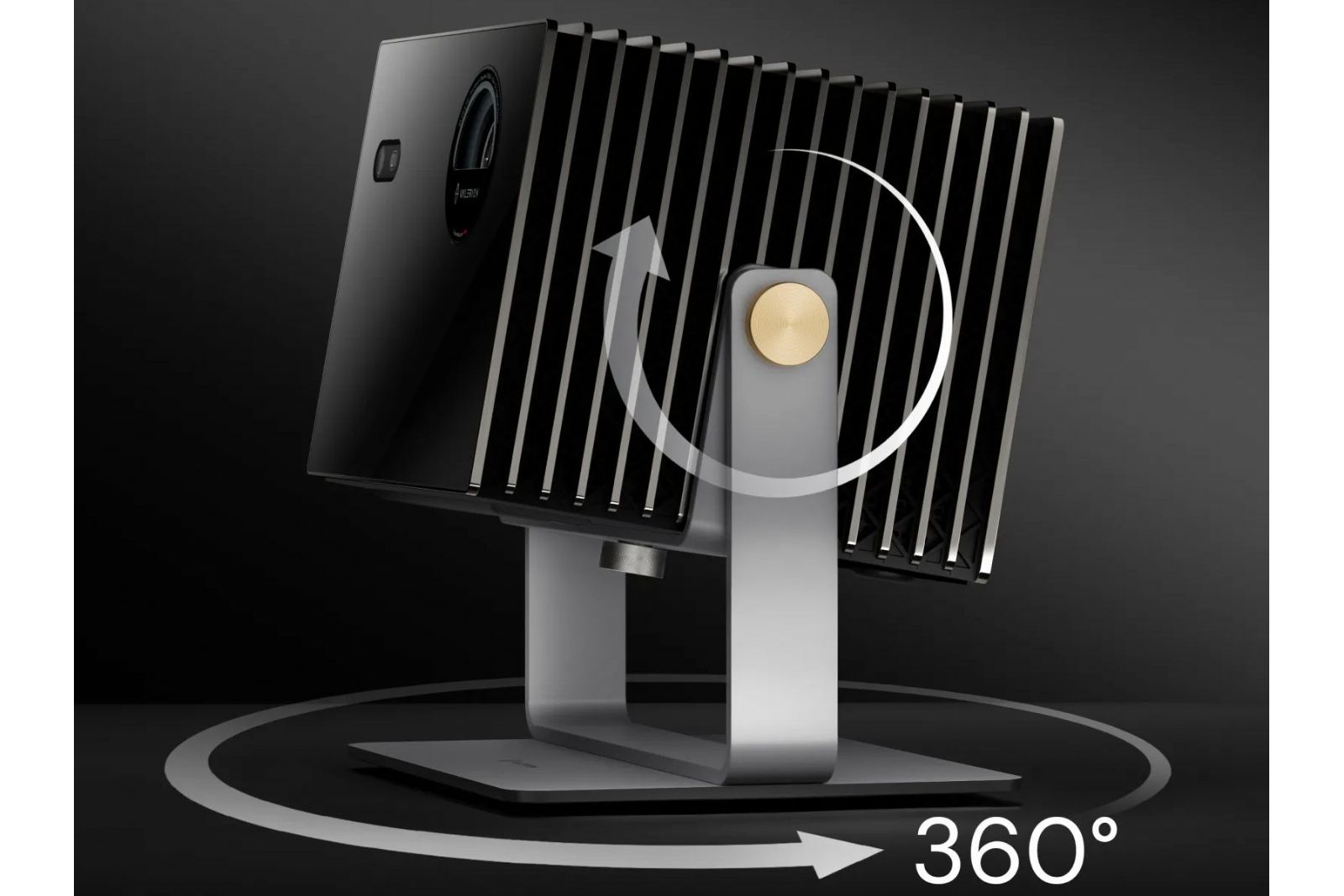 Den integrerade gimbal-justeringen gör det möjligt att smidigt vinkla projektorn både horisontellt och vertikalt. Du kan snabbt justera bildens riktning utan att flytta hela stativet – perfekt vid temporär placering i vardagsrum, sovrum eller kontor.