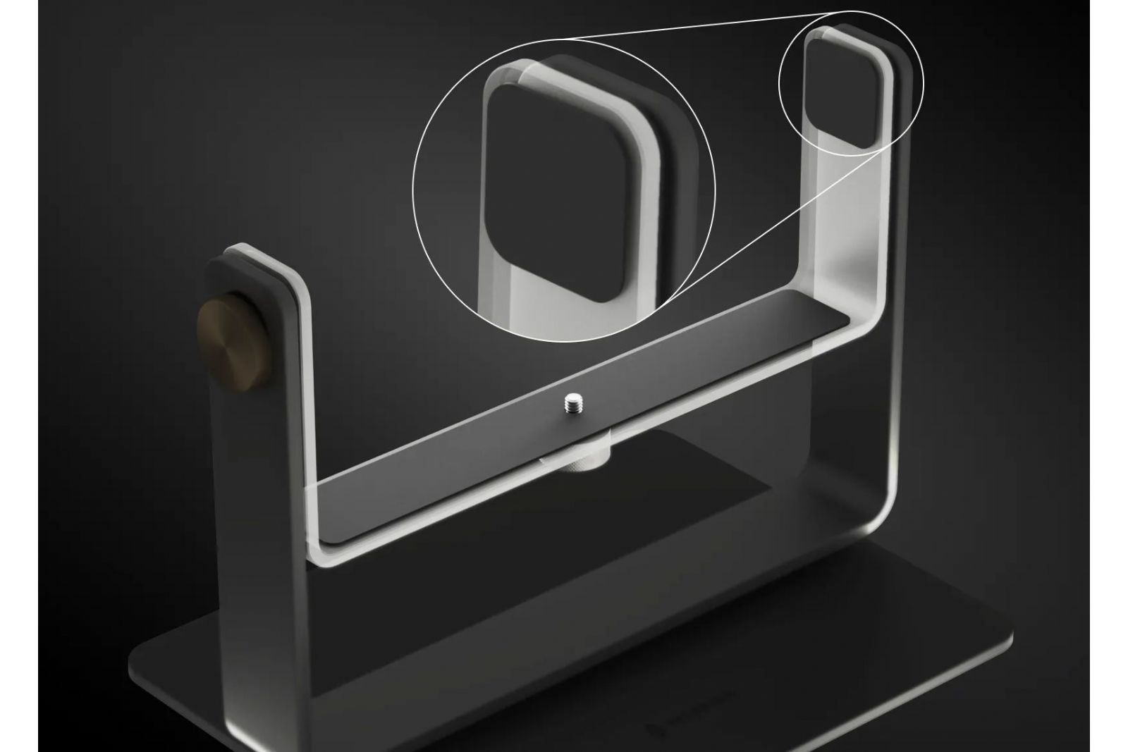 Desktop Gimbal Stand är byggt i robust metall för god stabilitet. Den kompakta basen ger låg tyngdpunkt och minimerar oönskade vibrationer, vilket är viktigt för att bibehålla skärpa och bildstabilitet. På sidorna och botten av stativet sitter kuddar av silikon som både ger bättre grepp om projektorn och skyddar den.