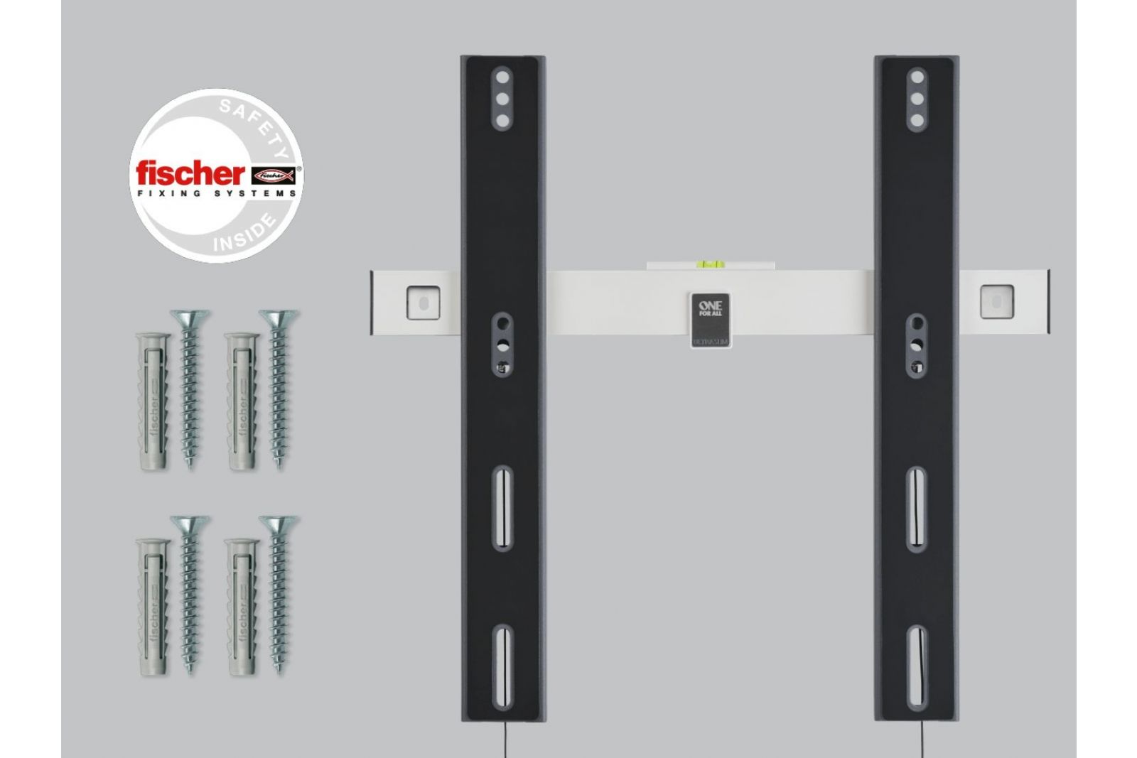 WM 6422 ingår i One For Alls Ultra Slim Line och kombinerar en stilren design med hållbara material. Med ett väggavstånd på endast 20 mm får du en diskret installation där TV:n sitter nära väggen men ändå med utrymme för funktionalitet.Den robusta konstruktionen är optimerad för att hantera både medelstora och större TV-apparater med bibehållen stabilitet.