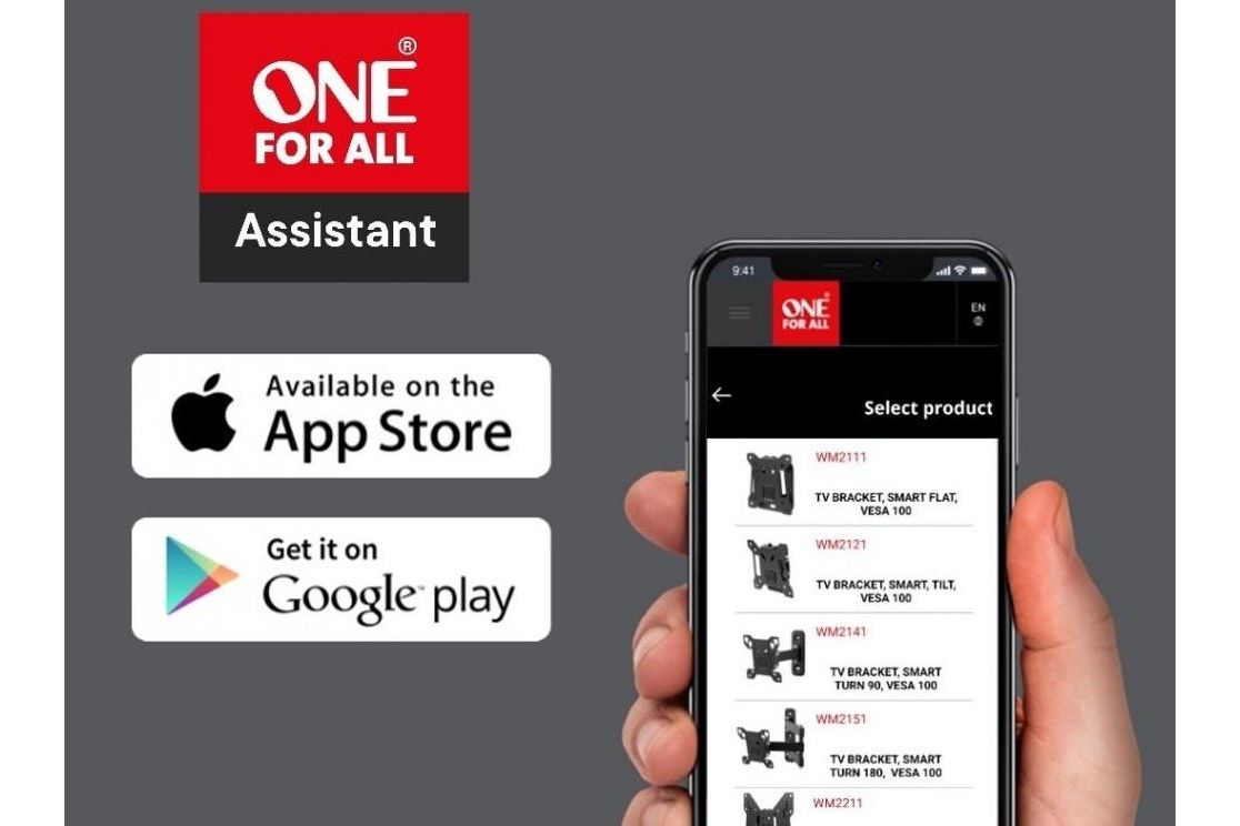 Med One For All Assistant-appen får du steg-för-steg-instruktioner för installationen. Appen använder förstärkt verklighet (AR) för att hjälpa dig hitta rätt höjd på TV:n innan du borrar, och innehåller även praktiska verktyg som vattenpass och ficklampa.