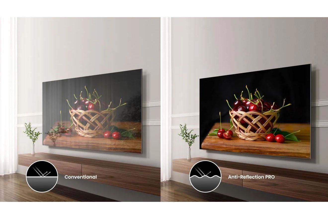 Oavsett om det är mitt på dagen eller kvällstid, minimerar Hisense Anti-Reflection PRO störande reflexer. Du kan njuta av levande, filmiska bilder utan att ljus från omgivningen påverkar upplevelsen.