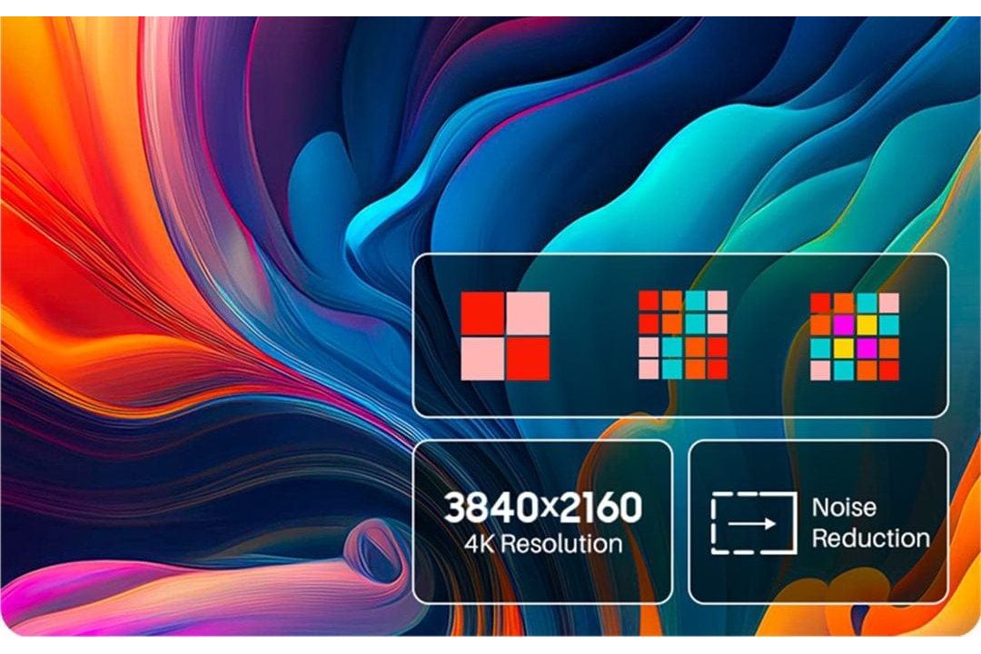Med 4K UHD-upplösning får du en skarp och detaljrik bild, medan HDR-teknik förbättrar färg, kontrast och dynamik.Det ger en mer levande bild där detaljer framträder tydligt både i ljusa och mörka partier.