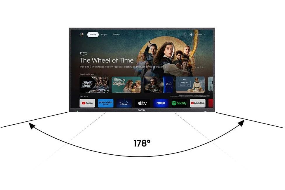 Med en betraktningsvinkel på upp till 178° får du en jämn bild även när du tittar från sidan. Det gör TV:n särskilt lämplig för sociala miljöer där flera personer tittar samtidigt.