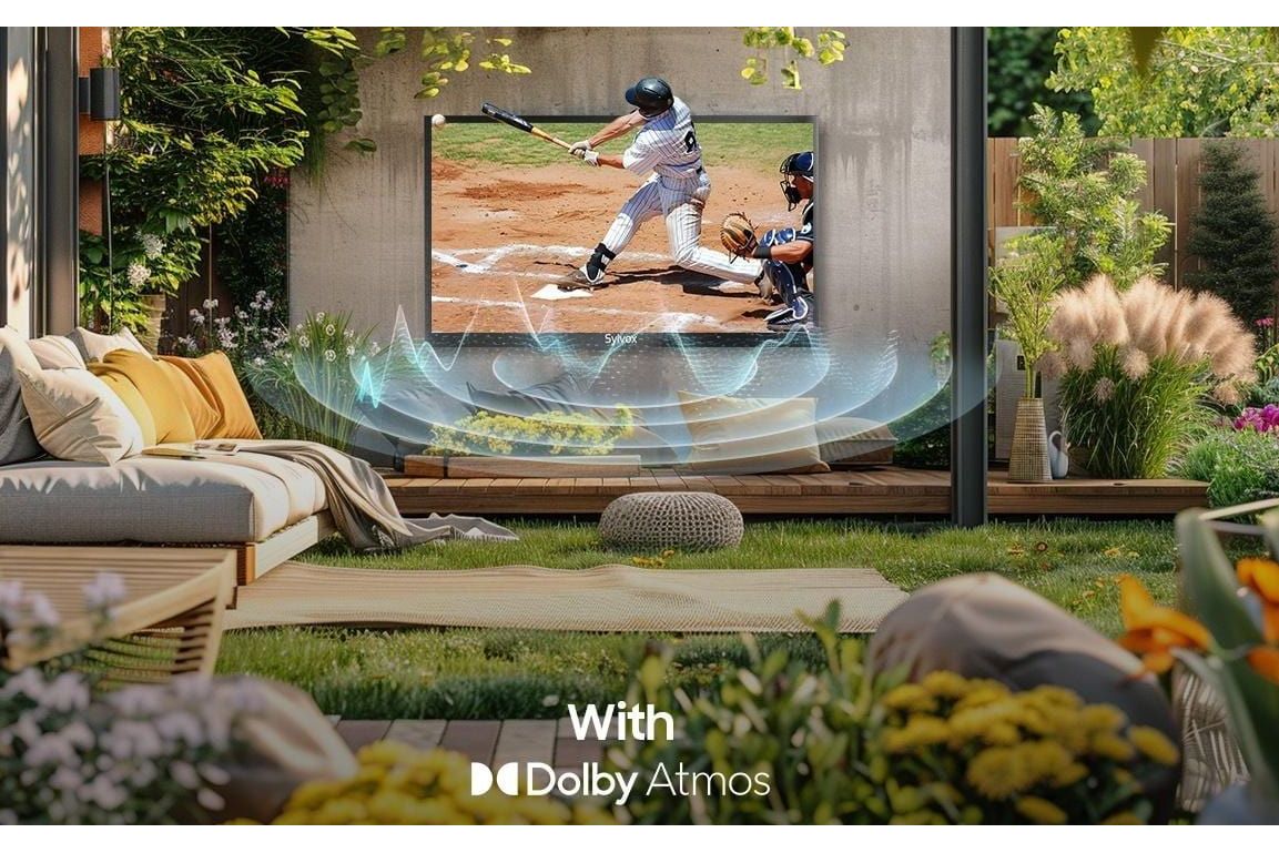 Med Dolby Audio levererar TV:n ett klart och balanserat ljud som fungerar bra i öppna miljöer.Det ger en mer engagerande upplevelse vid både film, sport och musik utomhus.