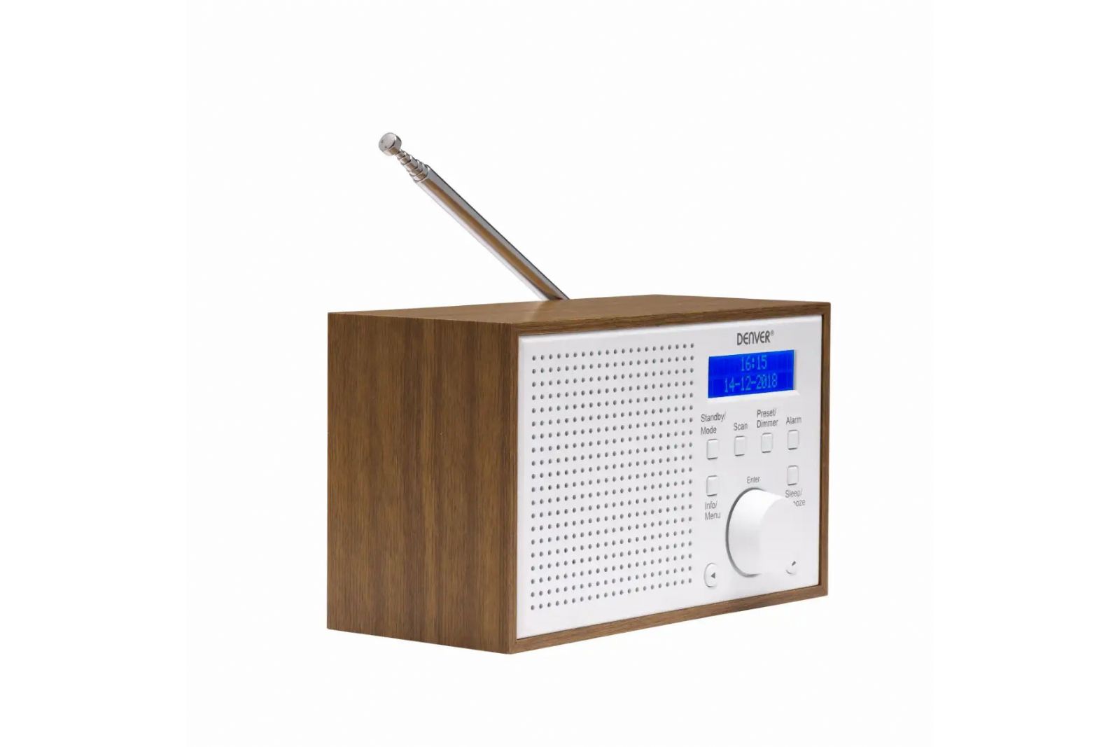 Denver DAB-46DGR:s stilrena mörkgrå eller vita front kompletteras av en intuitiv LCD-display som tydligt visar stationens information och klockslag. Den kompakta storleken gör den lättplacerad på nattduksbordet, köksbänken eller skrivbordet, vilket ger dig flexibilitet att njuta av din favoritmusik var du än befinner dig.