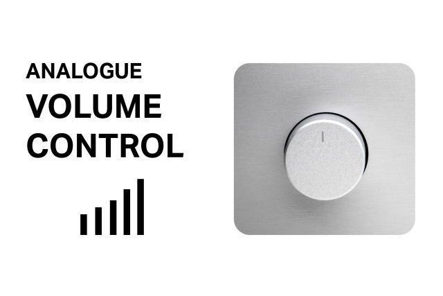 Volymkontrollen är helt analog och använder en motorstyrd potentiometer, vilket ger exakt nivåjustering utan att kompromissa med signalens integritet.