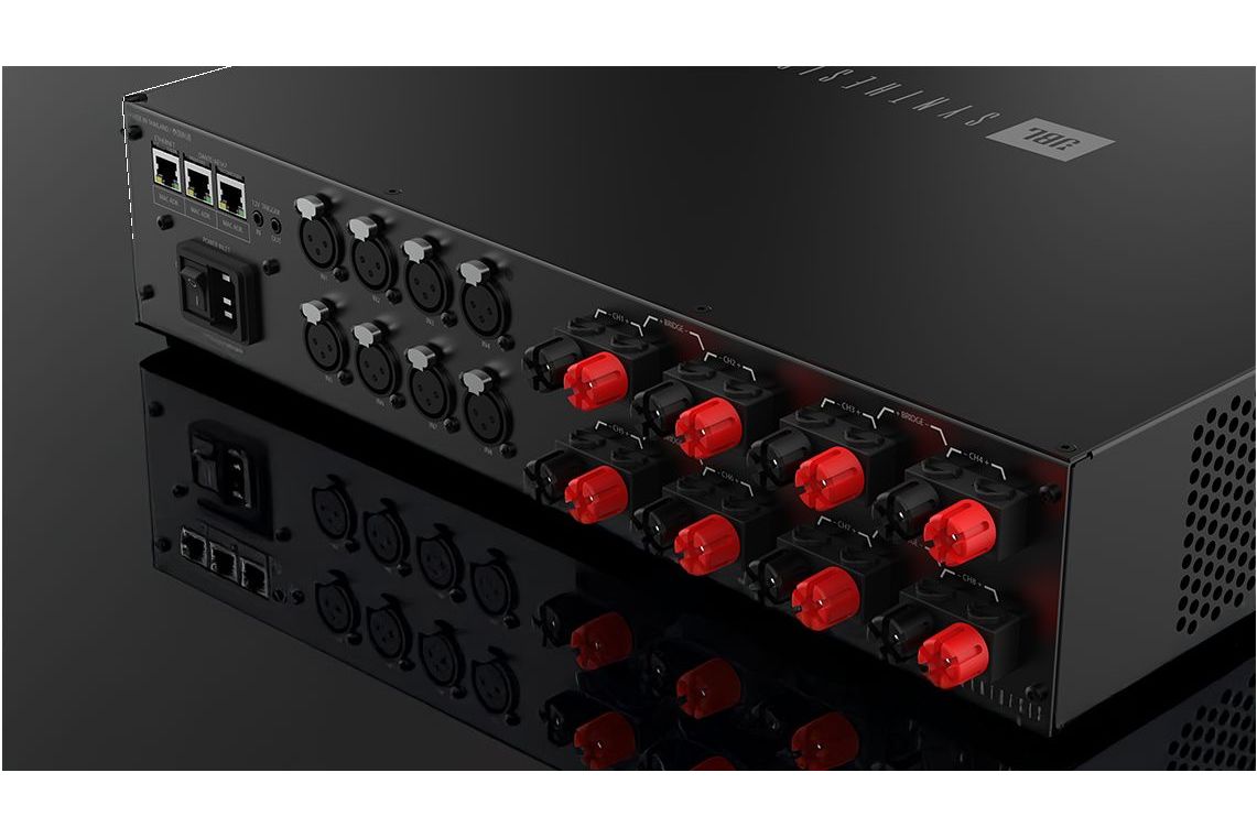 - Utvecklat för att hantera hög effekt och stort antal kanaler som en del av ett komplett JBL Synthesis-system