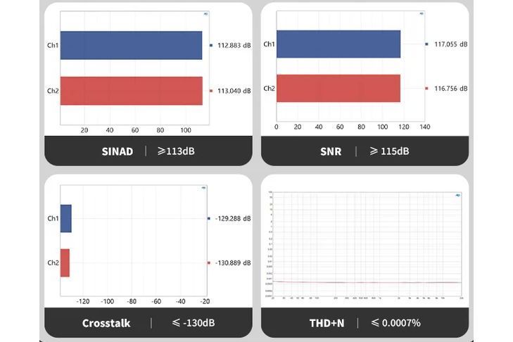 ZP3 är tillverkad med beprövade komponenter av hög kvalitet: NE5532 op-ampar, ELNA-kondensatorer och en NJU72315-volymstyrningskrets ger låg distorsion och hög precision. Specifikationen imponerar, med ett signal/brusförhållande (SNR) på >115 dB och en total harmonisk distorsion + brus (THD+N) på <0.0008%. Det innebär att ljudet är rent, klart och exakt, även vid högre volymer.