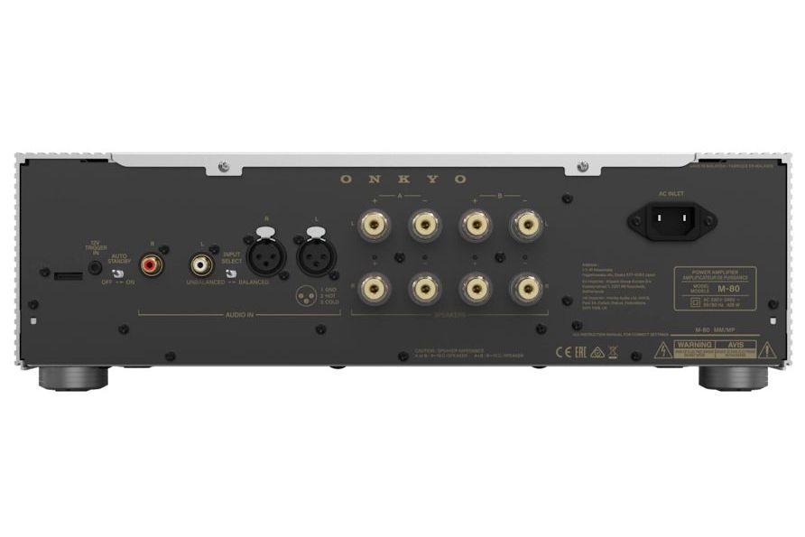 Ett effektsteg tar signalen från förförstärkaren och levererar den med kraft till högtalarna. Separata försteg och effektsteg ger renare signalvägar och maximal flexibilitet, vilket resulterar i högupplöst ljud med minimal påverkan från andra kretsar. M-80 återger musiken troget, från subtila nyanser till kraftfulla toppar, och skapar en djupt engagerande lyssnarupplevelse.Anslutningar